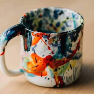 На мастер-классе мы будем лепить и декорировать чашку брызгами краски, цвета можно выбрать любые.